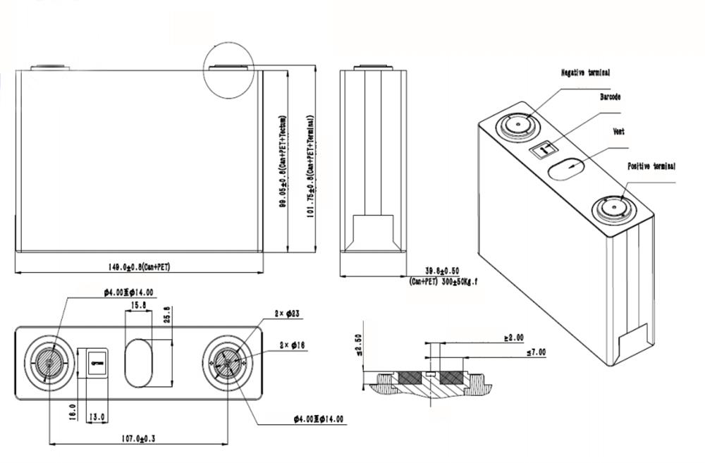 電池尺寸 | 101.75±0.8*39.8±0.5*149.0±0.8mm |